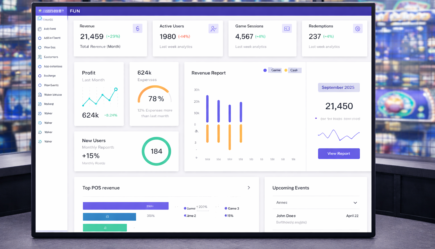 Back Office Management System centralizes games, revenue, inventory, POS, and staff operations into one unified platform.